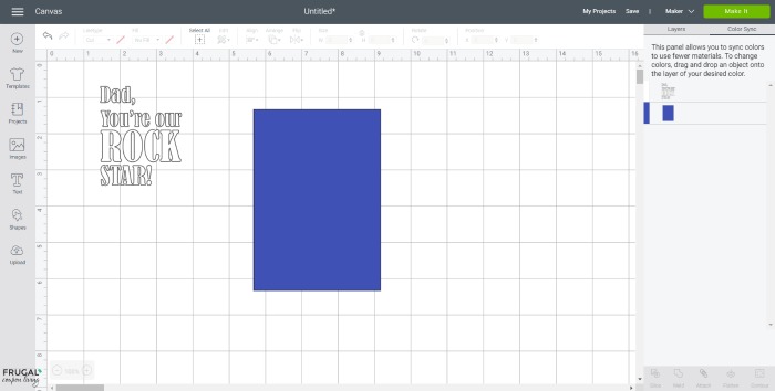 Insert one square shape onto the Design Space canvas to create the photo frame backing. Size the square to match the size of the picture frame, in our case it was 3.5” wide x 5” high.