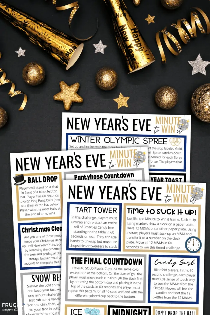 Typically the New Year’s Eve countdown starts with ten. However, this NYE, you might find yourself counting down from 60… a lot! At your new New Year’s Eve party, before the countdown, you and your guests will enjoy these entertaining and fun Minute to Win it New Year’s Eve Games printable.