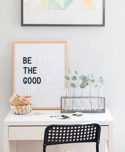 This blogger does it again turning geometric shapes into a headboard – perfect for a teen bedroom. I love all the touches of color working of a white starting point. | A Kailo Chic Life
