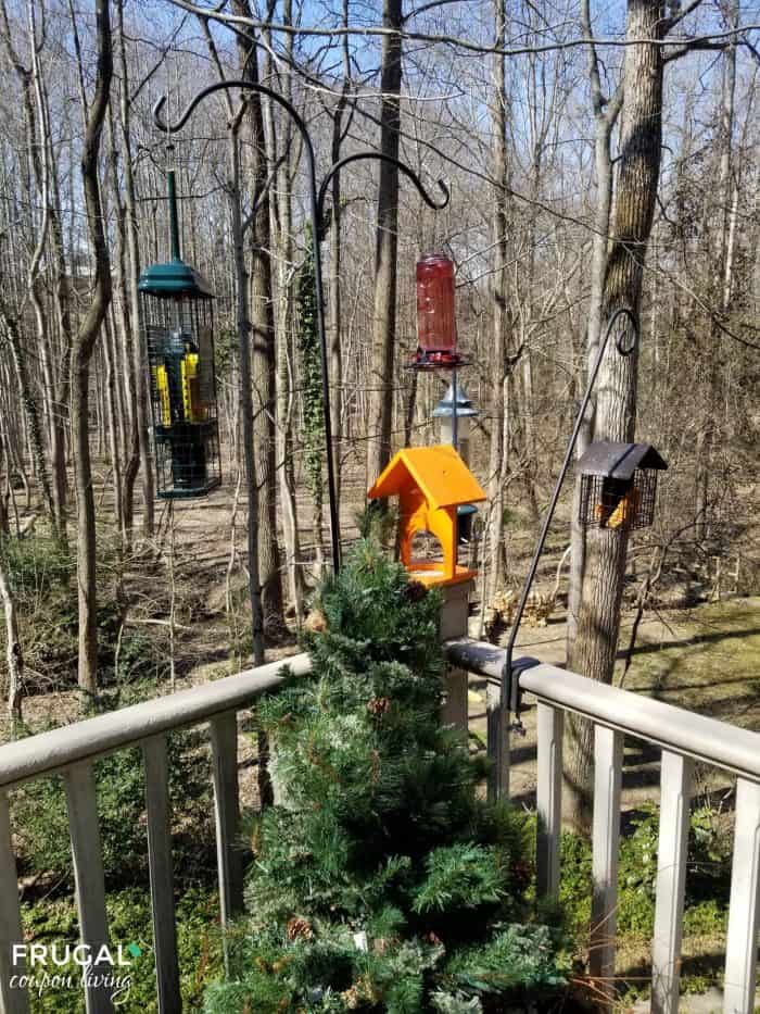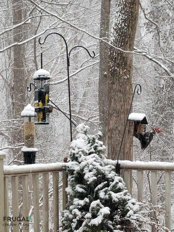 Bird feeders can vary on the type of bird you are looking to attract. Because of this reason, it’s important to have a variety of seeds as well as bird feeders. Being in the woods, our seeds attract squirrels, mice and (most annoying) raccoons, that is why I swear by the Brome Bird Care Squirrel Buster Bird Feeders.