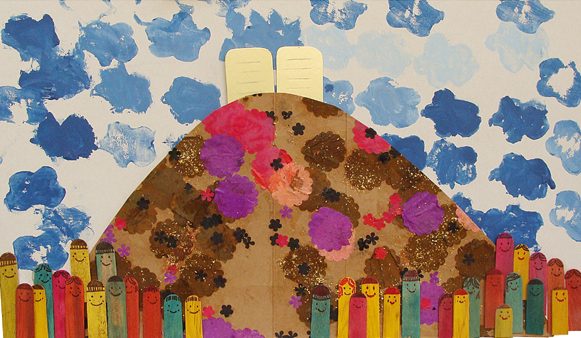 1. Arrange three popsicle sticks in a triangle shape to represent the Trinity.