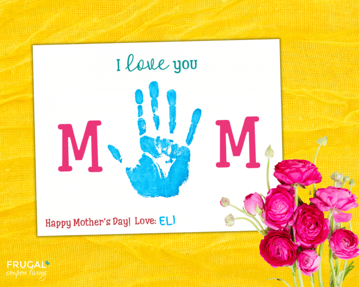 This set comes with five fun Mother’s Day Craft Ideas. Our first idea keeps the message simple. I love you Mom. The O in Mom is filled with your kids’ handprint.