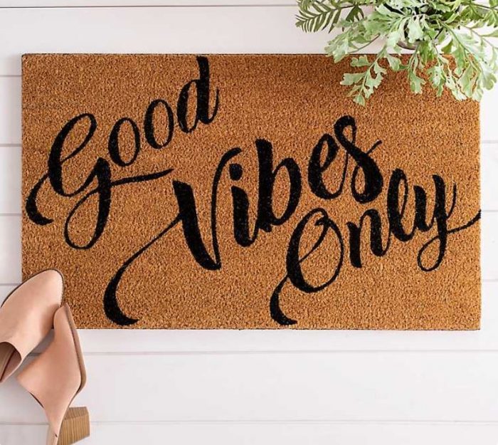 There are so many fun ones! I love the Good Vibes Only shown above, as well as the Home is Our Happy Place and You Better Have Coffee doormats.