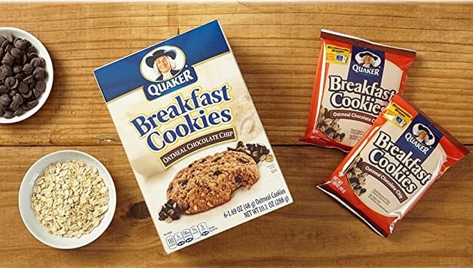 Live out your childhood dream of eating cookies for breakfast with Quaker Oatmeal Breakfast Cookies. These delicious, chewy cookies are baked with whole-grain Quaker Oats, and provide an excellent source of iron and calcium and a good source of fiber (contains 6 grams of total fat per serving). With Quaker Breakfast Cookies, you can indulge responsibly while getting the nourishment you want to fuel your morning. Each box contains six individually wrapped cookies.