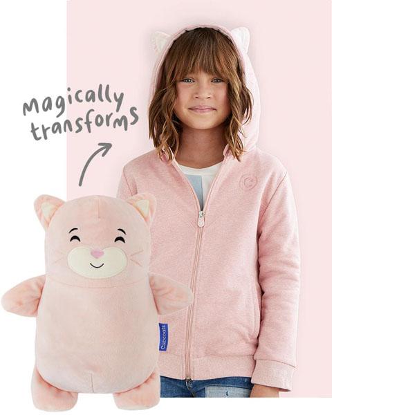 A favorite stuffed animal? Your child’s most comfortable coat? A Cubcoat is both! The super snuggly Cubcoats Kali Kitty brings happiness wherever she goes. This soft pink cuddly plush magically transforms into a beautiful heathered blush hoodie whenever your cub needs an extra bit of warmth. This super positive kitty Cubcoat will always have your back!