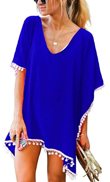 How cute is this Adreamly Women’s Pom Pom Trim Kaftan Chiffon Beach Cover-Up?? I absolutely love the pom poms on this one, and it would looks super cute worn over a tank and shorts, too!
