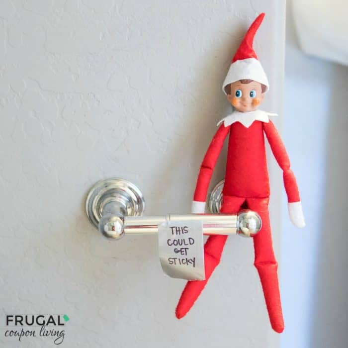 Are you following all of Frugal Coupon Living’s Elf on the Shelf Ideas? See well over 100s of creative, funny, and original ideas for your Elf! Duct Tape Prank – this could get sticky!