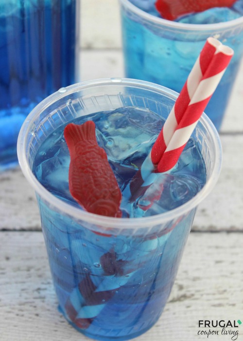 All parties need beverages. Two creative ideas for party drinks for a Baby Shark Theme Party, are serving regular water and ocean water (blue). You can serve in two large glass drink dispensers. The kids will also love this Copycat Sonic Ocean Water using Swedish Fish.