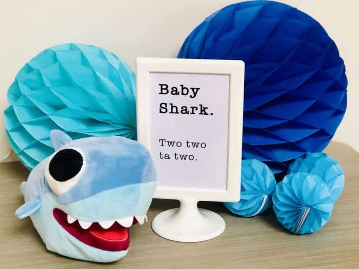 We usually favorite shows lead to the years Birthday Party Theme! If you took are planning a Baby Shark birthday party theme, take a look at these Baby Shark Birthday ideas! But before we begin, ladies and gentlemen, take your town hands, place them on top of your head and make a cute shark fin (look at you adorning your free baby shark party hats!)
