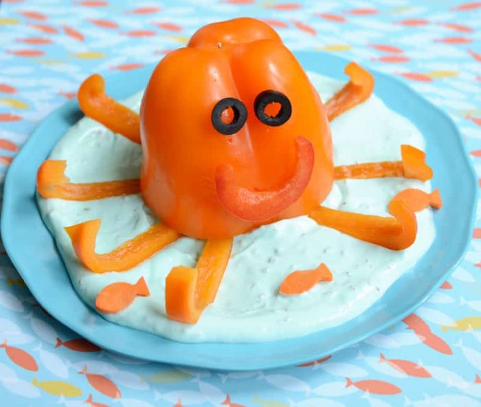 Of course, in the theme of baby shark party food, this octopus veggie dip is a great way to encourage your kids to eat more vegetables and will surely please the adults. Surround by a lot more fresh veggies for dipping. Just add napkins! | Kix