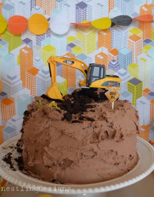 Dump everything and join the crew for this set of Construction Party Ideas. When preparing for this bulldozer birthday party, a hard hat is required! #FrugalCouponLiving #BirthdayPartyIdeas #ConstructionPartyGrab your digger and make this chocolate cake construction zone – it looks like the messier the icing, the better! We love the idea of these orange cone candles! | Nestling Designs