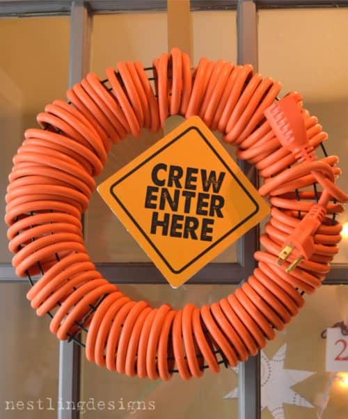 Welcome the crew with a homemade wreath made out of an orange extension cord. | Nestling Designs