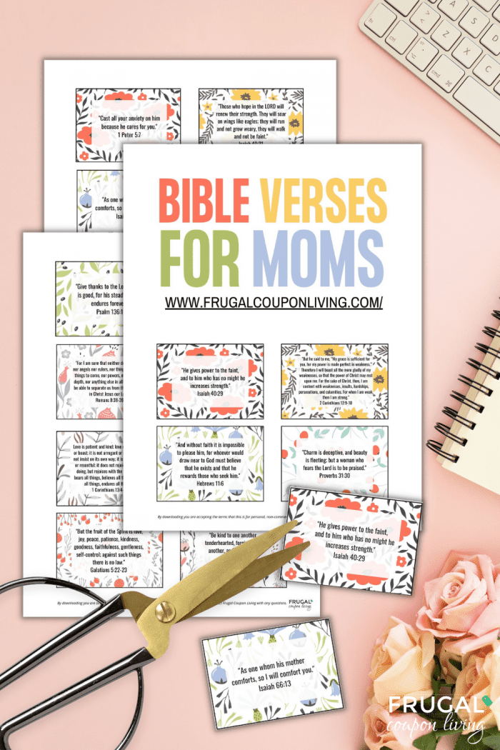 All moms can use a strong foundation. What does the Bible say to encourage mom? Download and print these Bible Verses for Mothers. As a mother’s day gift idea, turn these memory verses for mom into a fun scripture card key chain. Pin to Pinterest.