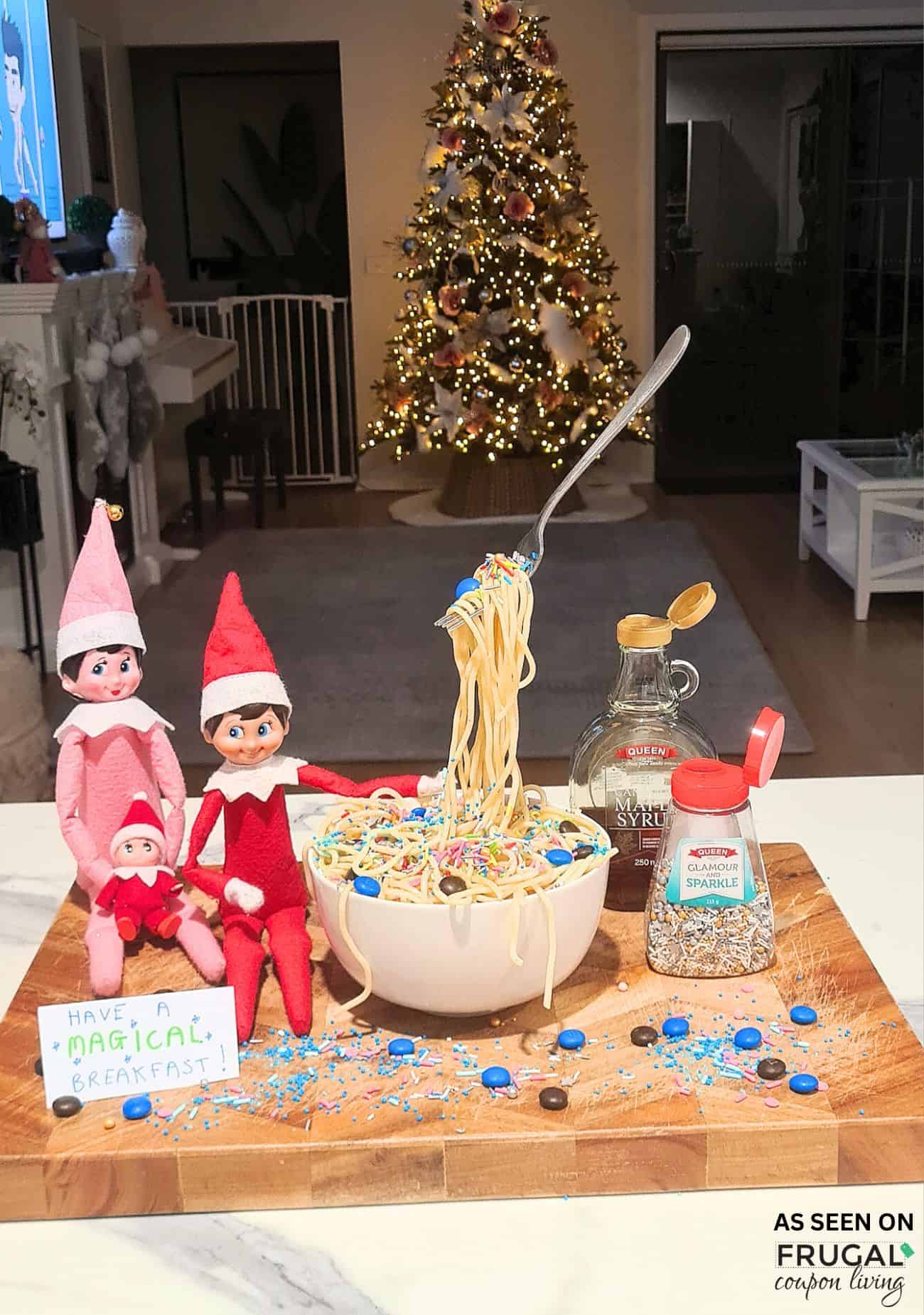 This simple and clever idea is perfect for those mornings when you need something quick. Your kids will be delighted to see their tiny scout’s creative side with this fun Santa drawing using condiments. It’s the perfect way to add a festive surprise to your family elf’s antics!