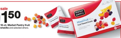 Target has Market Pantry Fruit Snacks for $1.50 per box or $.50 after coupon.