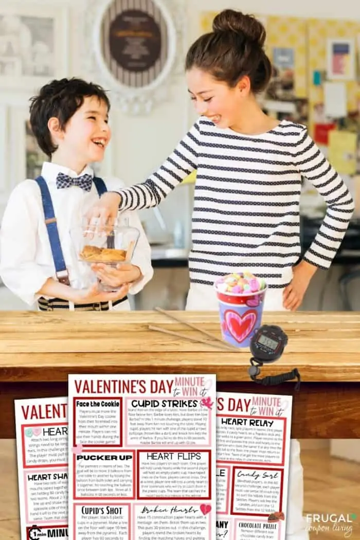 For a full list of instructions and supplies, get the Minute to Win it Games printable for Valentine’s’ Day!