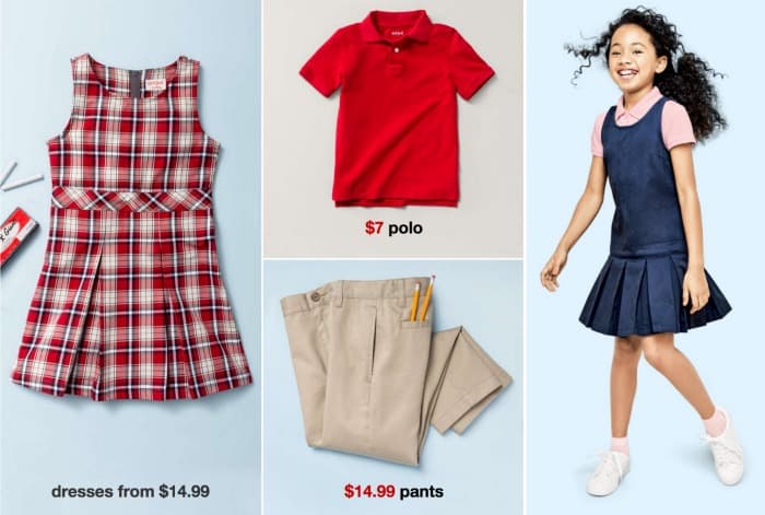 Through the end of today (8/15), Target offers 25% off Uniforms! To get this discount just use coupon code UNIFORMS at checkout.  This sale makes polo shirts as low as $5.25, pants and dresses just $11!  There are sizes regular and husky available.