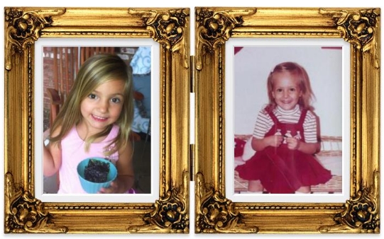 Yep, the picture on the left is my sweet 4-year old daughter and the picture on the right is me at the same age… it is so neat to compare pictures of me as a young girl to pictures of my kids!