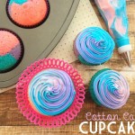 Not only are these bright and fun just like a cloud of cotton candy, but they taste just like cotton candy! We used cotton candy flavoring and food coloring to make these cupcakes perfect for a birthday party, after school celebration or any ole reason to have something yum!