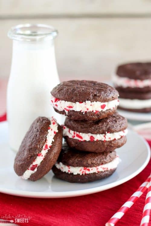 These Chocolate Peppermint Sandwich Cookies will be the star of your Christmas cookie exchange or give as a homemade gift! | Celebrating Sweets