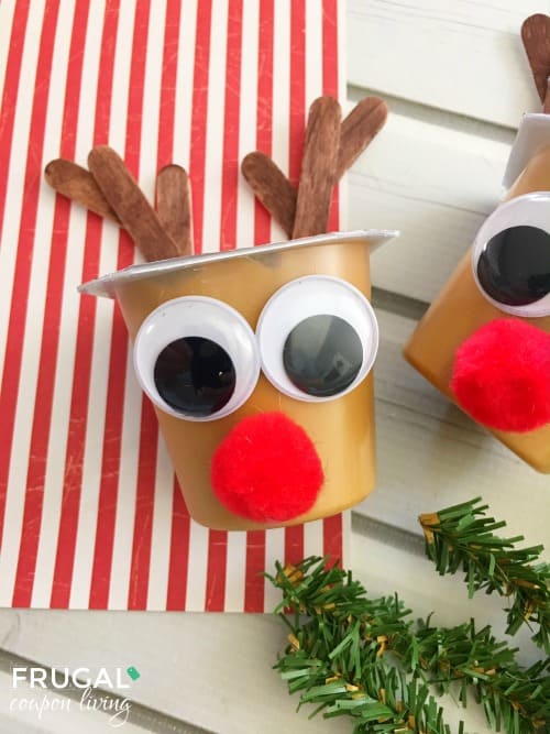 If you need an Edible Christmas Gift for the kids or classroom, try making these Rudolph Reindeer Pudding Cups! | Frugal Coupon Living