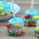 3. Dip a marshmallow into the chocolate and tap off excess, roll the top into the nerds and place on a parchment lined cookie sheet. Let dry for a few minutes before you place the fish on or they will just slide off. Place 1 to 3 fish on each marshmallow.