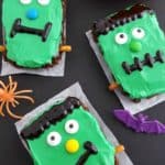 Feed your little monsters this tasty Halloween Dessert. We love these Frankenstein Brownies for a Halloween class party idea or to serve during the month of October for a home dessert idea. Enjoy!
