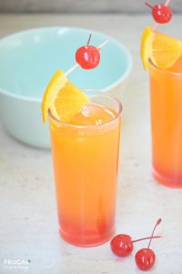 - In a jar combine the orange juice, pineapple juice, lime juice, 1 tablespoon of sugar syrup, and the cinnamon stick. Stir until well combined.