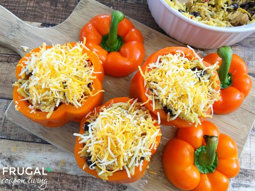 - Wash and dry peppers, slice off the tops and hollow out the inside with a spoon.