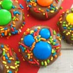 Note: Play with these. They can easily become Minnie cookies with pink chocolate melts and some red M&Ms. Also, stay true to your party colors. Use red chocolate melts and yellow M&Ms for a red and yellow themed party.
