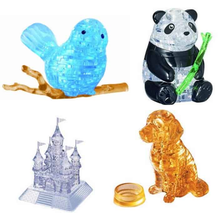 Check out these awesome 3D Crystal Puzzles! These 3D brainteasers display a sleek, unusual puzzle. After joining the interlocking plastic pieces together, its glossy, sleek design will impress all who see it. Any kid would love any of these. These are available in many option and prices start at just $7.99 for the little blue bird Crystal puzzle shown above.