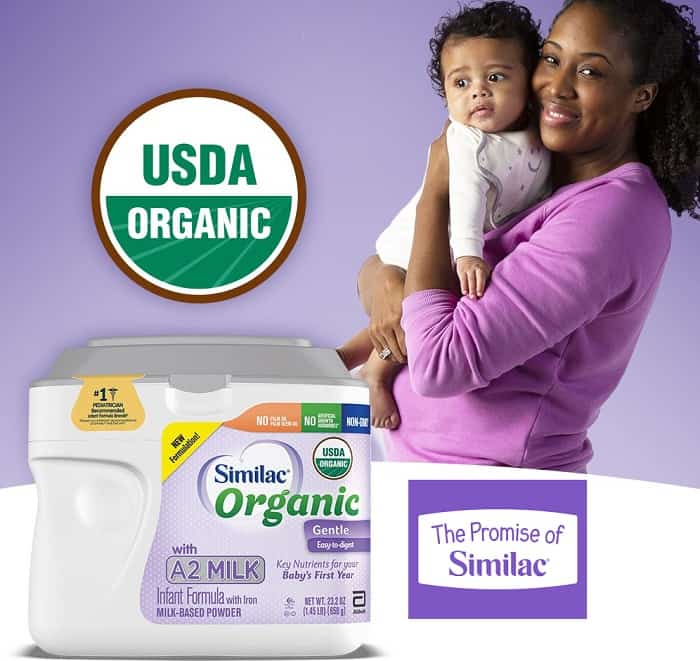 New and improved Similac Organic with A2 Milk is baby formula modeled after breast milk and made with organic lactose. It is a gentle, easy-to-digest infant formula made with A2 milk and USDA-certified organic ingredients. It provides support for baby’s brain and eye development with an exclusive blend of DHA, lutein, and vitamin E, nutrients found in breast milk. Our infant formula with A2 milk has no palm olein oil or artificial growth hormones,* and it’s non-GMO.† * No significant difference has been shown between milk derived from rbST-treated and non-rbST-treated cows. † Ingredients not genetically engineered. ‡ SNAP is a service mark of the US Department of Agriculture; USDA does not endorse any goods, services, or enterprises.