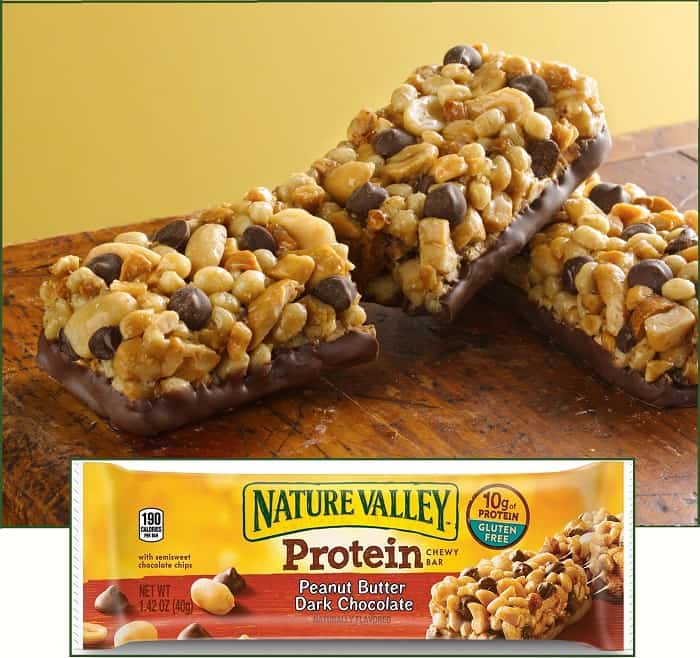 It starts with the best ingredients in nature…like roasted peanuts and peanut butter, which are natural sources of protein. Finish it off with the flavor of dark chocolate and you have our Nature Valley? Protein bar, a delicious chewy snack with a satisfying crunch.