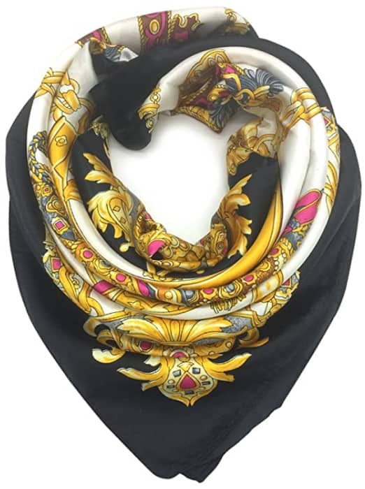 Add on-trend exotic prints to your look with this Large Square Satin Headscarf. This square-shaped scarf is a fashion-forward piece in your styling accessories. It features an abstract print throughout in pleasant colors for modern flair. Made of lightweight silk-like fabric, this fashion scarf offers easy, comfortable drape no matter how you choose to style it. Layer over casual and smart ensembles for a boost of style.