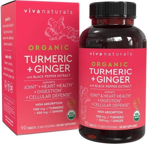 Improve your joint support and digestive health with these Organic Turmeric Curcumin Supplements + Ginger Extract & Black Pepper. This supplement provides joint, antioxidant, cardiovascular and digestive support.