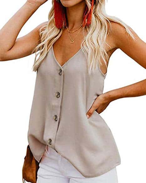 A row of buttons down the front bring casual charm to your day when you don this breezy Button Down V Neck Tank Top. Great for the spring weather, it’s long enough to wear with leggings or can be knotted up to wear with high waisted denim.