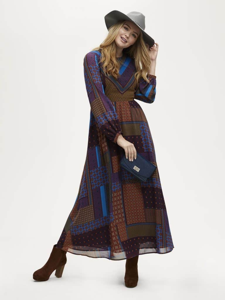 I love all the colors on this Scoop Blouson Sleeve Maxi Dress. It’s the perfect dress for fall with the dark, rich colors. And, the long sleeves and skirt length will help keep you warm. Get this for $59.95.