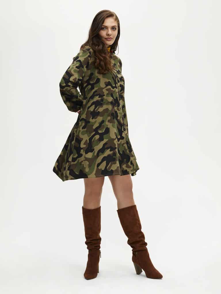 Camo is a popular pattern, and it’s one that I’ve really grown to love. This Scoop Button-Down Swing Shirt Dress is so cute and has the trendy t-shirt style that’s popular right now. Get this dress for $32.95.