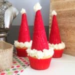 We had so much fun with our Christmas Food Crafts for kids we wanted to revamp one of our recipes – Our Santa Hat Cupcakes! These fun cupcakes can be used for Santa with milk, instead of cookies. They also are great for classroom parties! Enjoy!