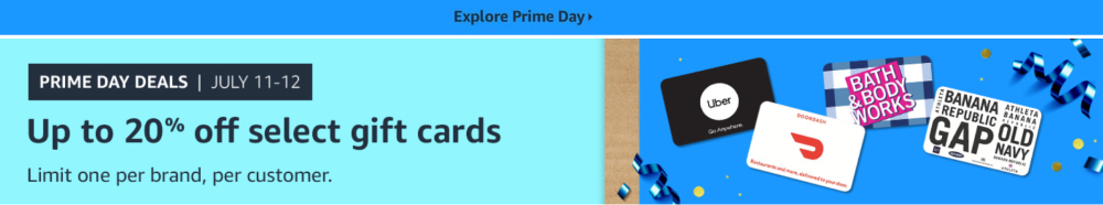 This year, Amazon Prime Day has 20% off gift cards. This is one brand per customer. This is great if you are gifting a gift card or find a brand you shop/visit frequently. It’s an easy 20% savings. You can layer it with other savings like discounted restaurant nights or coupon codes in addition to using your (already purchased) gift card.