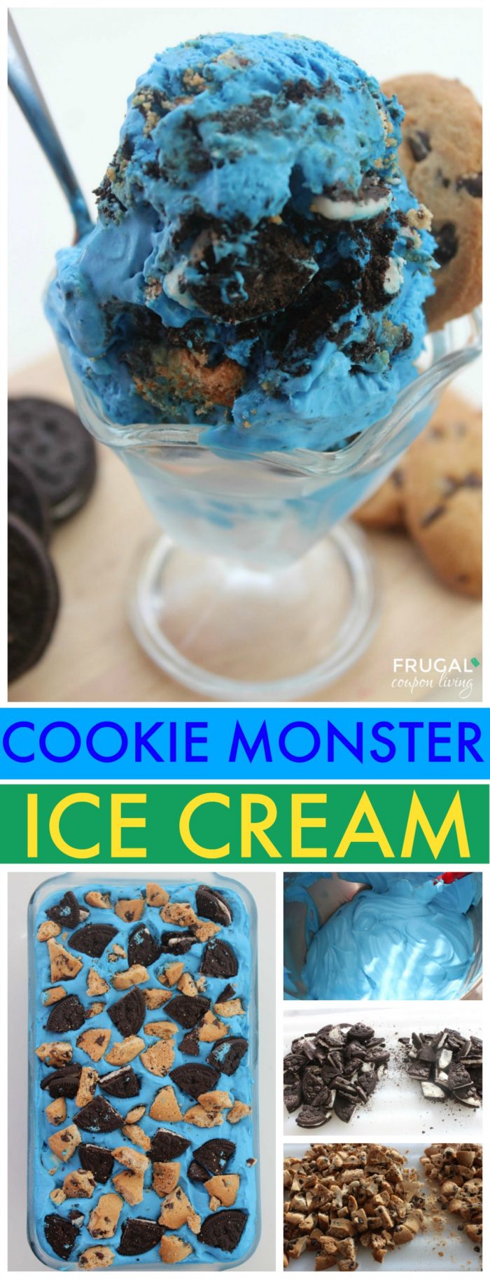 Looking for a Sesame Street Party Idea? Looking for a yummy treat to feed your Cookie Monster? Take a look at this No Churn Cookie Monster Ice Cream Recipe.
