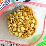 Optional: Make without Goldfish. Other variations include adding pretzels or substitute with mini Saltines.