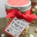 We need S’more Teachers Like You! Save this S’more Teacher Gift Tag Template for your child’s school year. It’s a thoughtful mason jar gift idea and a tasty snack mix recipe for your child’s teacher.