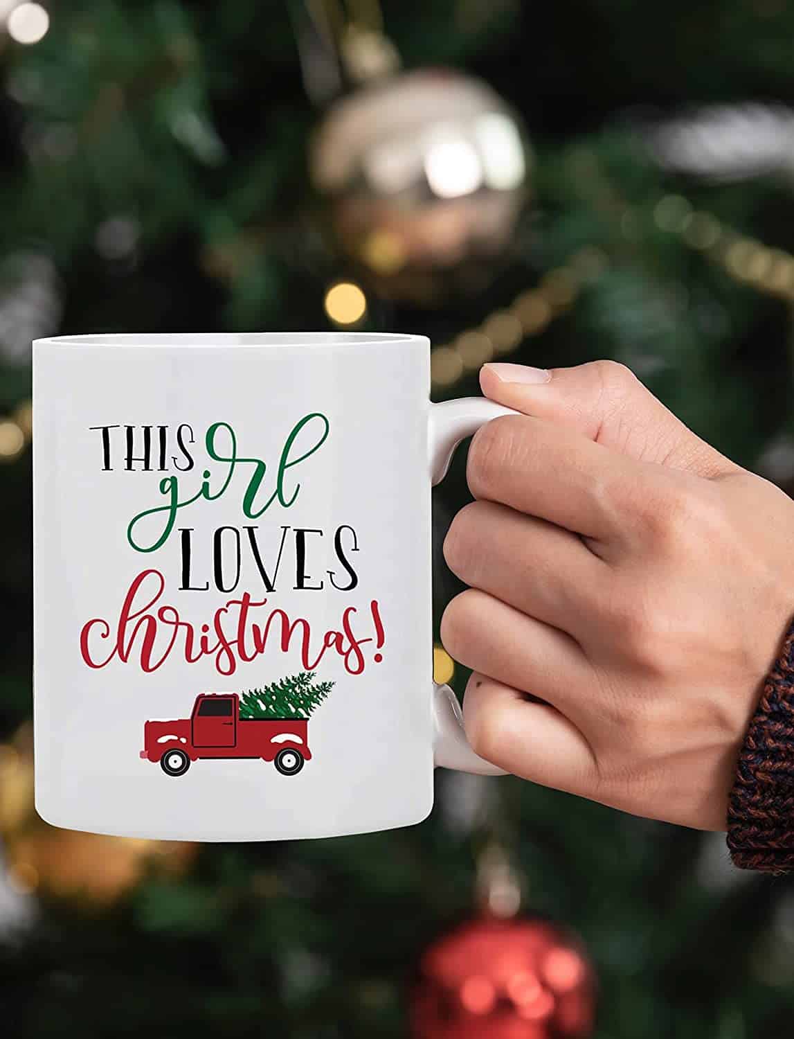 This Girl Loves Christmas Mug is one of my favorites because I do love Christmas! I’ve always loved the red truck with Christmas tree for holiday decor, too.