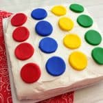 Right hand on red, left foot on yellow! Does this sound like a familiar board game? Growing up, I used to love to play Twister! Players always ended up in the craziest positions, would fall to the ground, and we all would explode in laughter. This Twister Cake is perfect for a family game night, kid’s birthday party, or perhaps something as small as having a friend over.